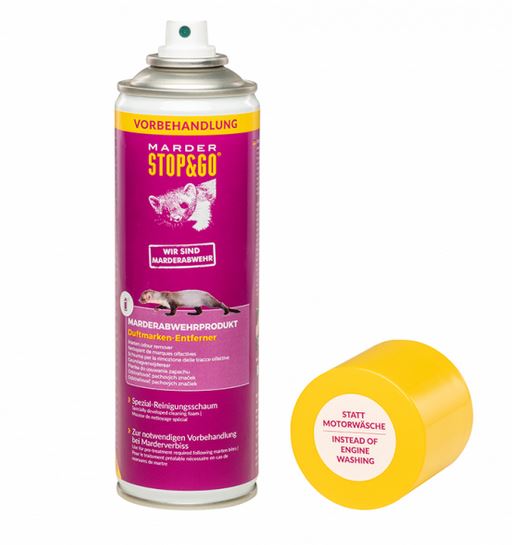 Slouží k rychlému odstranění pachových stop a značek. Speciální čisticí pěna pro odstranění pachových stop. Důrazně doporučujeme použít Odstraňovač pachových stop - STOP&GO před každým dalším opatřením na ochranu proti kunám, jako je instalace odpuzovače do auta nebo instalace již používaného sklopce nebo sklopce na který se sahalo holou rukou.